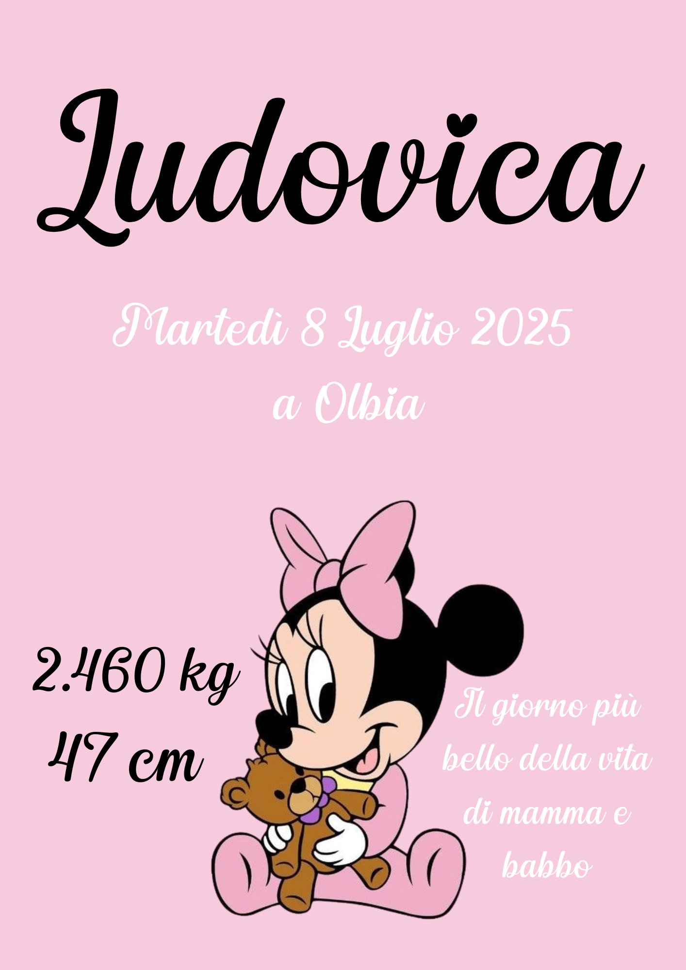 Puoi decidere di inserire tutti i dati o solo alcuni di questi e se non trovi disponibile una grafica di tuo gradimento puoi indicare il personaggio che vorresti e noi lo troveremo per te! Possiamo anche adattare una tua grafica se preferisci, basterà comunicarlo al momento dell'acquisto.